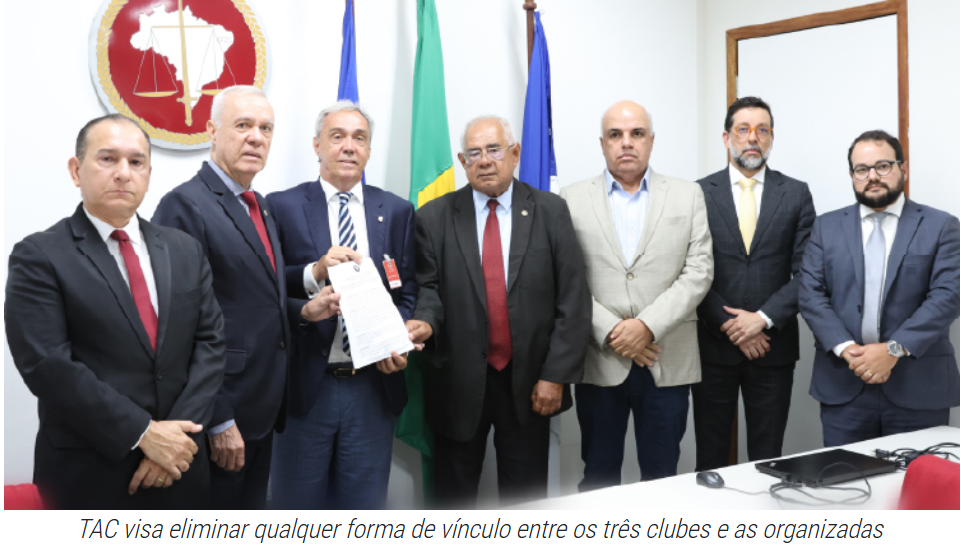 Após mais uma reunião sobre como combater a violência de torcidas organizadas, nesta terça-feira (11), dirigentes do Sport, Náutico, Santa Cruz e Federação Pernambucana de Futebol firmaram um Termo de Ajustamento de Conduta (TAC) com o Ministério Público de Pernambuco (MPPE) para eliminar qualquer forma de vínculo entre os três clubes e as organizadas Torcida Jovem do Leão, Explosão Coral e Náutico até Morrer impedindo o acesso, apoio ou utilização de recursos que beneficiem tais torcidas.