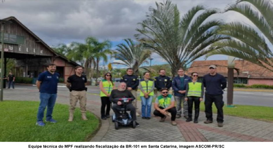 O Ministério Público Federal (MPF) está fazendo uma série de vistorias nas vias marginais da BR-101, em Santa Catarina. Com o auxílio de perícia especializada, está sendo avaliado o estado de conservação das vias, que têm sido alvo de inúmeras reclamações da população local. Nos dias 11, 12 e 13 deste mês, o MPF esteve em Joinville.