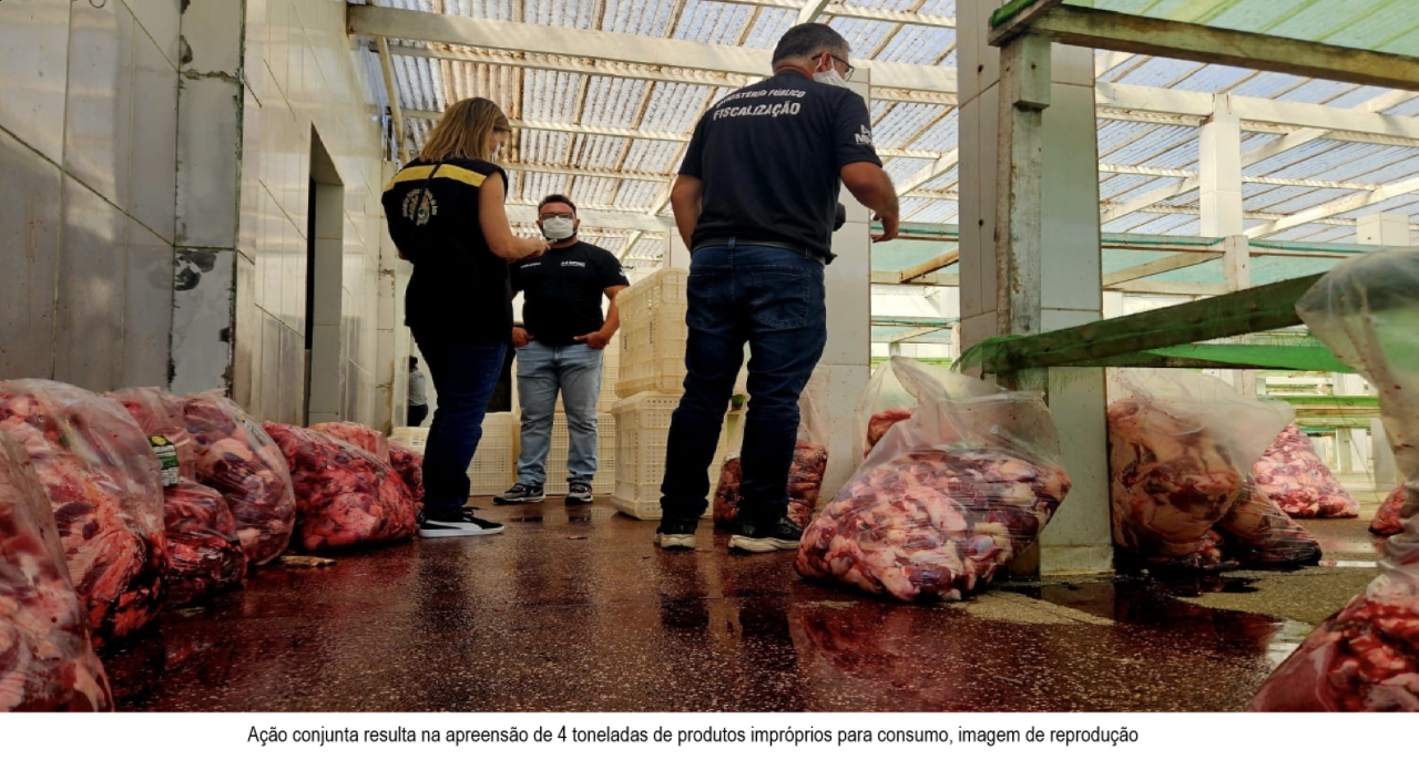 Após a operação realizada pelo Ministério Público do Estado do Acre (MPAC), por meio do Núcleo de Apoio Técnico (NAT), e pelo Instituto de Defesa Agropecuária e Florestal do Acre (Idaf), no último sábado, 9, que resultou na apreensão de mais de 4 toneladas de carne imprópria para consumo humano, o estabelecimento foi lacrado por causa das irregularidades.