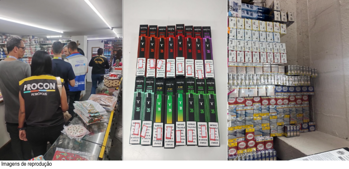 Além do apoio da Secretaria de Estado de Defesa do Consumidor (SEDCON) e do Procon Estadual (Procon-RJ). Quatro estabelecimentos foram fiscalizados com o objetivo de coibir a venda ilegal de cigarros eletrônicos, cuja comercialização é proibida no Brasil.