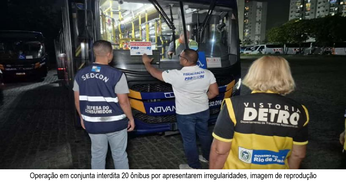 A força-tarefa, liderada pela Secretaria de Estado de Defesa do Consumidor (SEDCON) e pelo Procon Estadual (Procon-RJ), em parceria com o Detro-RJ e o Detran-RJ, resultou na interdição de 20 coletivos. Em Nova Iguaçu, nove ônibus foram interditados nas garagens da Evanil Transportes e Turismo e da Viação Novanil.