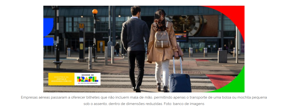 A Secretaria Nacional do Consumidor (Senacon), do Ministério da Justiça e Segurança Pública (MJSP), divulgou análise sobre a nova modalidade tarifária anunciada pelas companhias aéreas Latam e Gol para voos internacionais. As empresas passaram a oferecer bilhetes que não incluem mala de mão, permitindo apenas o transporte de uma bolsa ou mochila pequena sob o assento, dentro de dimensões reduzidas.