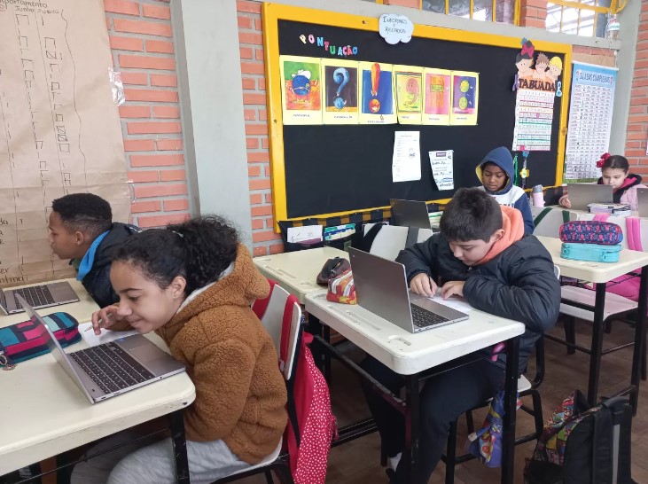 Em Porto Alegre (RS), os alunos do sistema municipal participam da chamada “Sala da Inovação”, onde exploram o ChatGPT e jogos como Minecraft e Roblox.