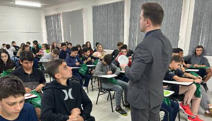 O período vespertino para alunos dos sexto e sétimo anos da Escola Estadual Básica Maria Regina de Oliveira foi marcado por um bate-papo sobre como agir na comunidade, cultivando aprendizados e repassando conhecimentos adquiridos sobre convivência e respeito ao meio ambiente. Na palestra do programa "Cultivando Atitudes", do Ministério Público de Santa Catarina (MPSC), o Promotor de Justiça Juliano Antonio Vieira abordou temas como ética, direitos, respeito, cidadania e combate ao bullying para os estudantes.