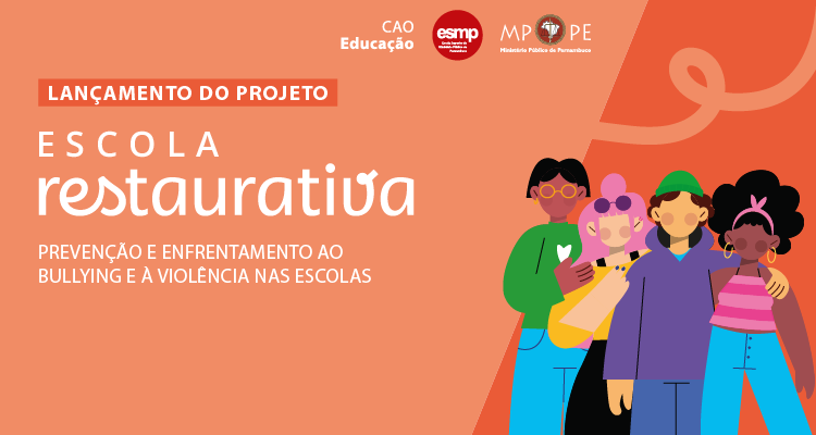 O Ministério Público de Pernambuco (MPPE), por meio de sua Escola Superior (ESMP), do Centro de Apoio Operacional de Defesa da Educação (CAO Educação) e da 29ª Promotoria de Justiça de Defesa da Cidadania da Capital (Educação), irá realizar, na próxima segunda-feira, 21 de outubro, das 14h às 17h, o lançamento do projeto “Escola Restaurativa: enfrentamento ao bullying e à violência no ambiente escolar”.