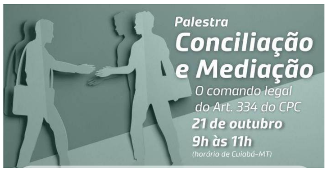 A palestra “Conciliação, Mediação e o comando legal do Artigo 334 do Código de Processo Civil" faz parte do projeto do TJMT que está debatendo a Justiça Multiportas. A primeira palestra foi realizada em julho com o tema "O Fortalecimento do Sistema Multiportas: o acolhimento e o atendimento no âmbito dos meios adequados de solução e pacificação de conflitos" e ministrada pela desembargadora Clarice Claudino da Silva.