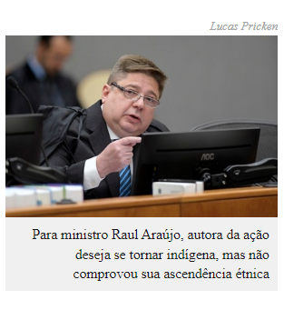 Para o ministro Raul Araújo, no entanto, a autora da ação não pode ser considerada indígena. "Ela deseja ser indígena, mas não é." Em sua análise, o processo não traz comprovação de sua origem. Em vez disso, trata de um desejo surgido por razões voluntárias.