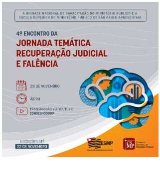 CNMP e Escola Superior do MP/SP abrem inscrições para o quarto encontro da Jornada Temática de Recuperação Judicial e Falências de empresas