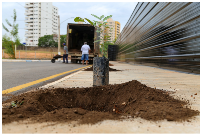 Ipê-branco, ipêzinho-de jardim e oiti foram as mudas nativas escolhidas para arborizar uma parte da Avenida Cássio Carbelin, no Bosque da Saúde, região de prédios residenciais de Cuiabá. Foram plantadas 103 mudas que, num futuro bem próximo, vão impactar o ambiente dessa região da Capital mato-grossense.