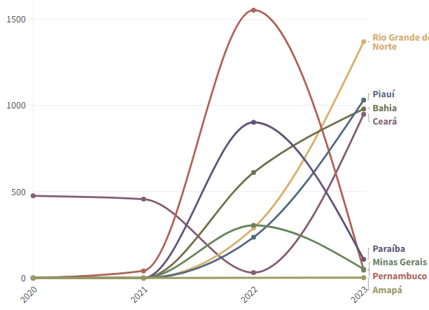 Entre 2020 e 2023, o total desmatado no país por projetos de renováveis chegou a 9,4 mil hectares, área equivalente à capital do Espírito Santo, Vitória. Dos oito estados brasileiros que registraram desmatamento por esse vetor no período, seis estão no nordeste brasileiro.