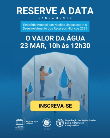 Neste webinar, será promovida uma discussão em torno da valoração do uso da água, além do lançamento da versão em português do World Water Development Report 2021 e do projeto Água e o Agro: Valoração da Água na Agropecuária.