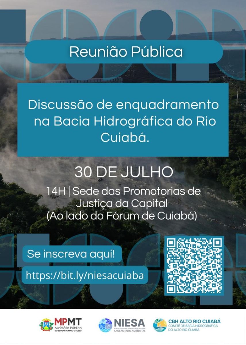 Para garantir que a população local e usuária desses recursos hídricos possam apresentar suas perspectivas, o NIESA convida toda a comunidade para integrar as discussões nas próximas semanas. Em Cuiabá, a reunião ocorrerá na Sede das Promotorias de Justiça da Capital, no dia 30 de julho às 14h. Inscrições também serão realizadas no local. Saiba mais em https://niesa.ufmt.br/