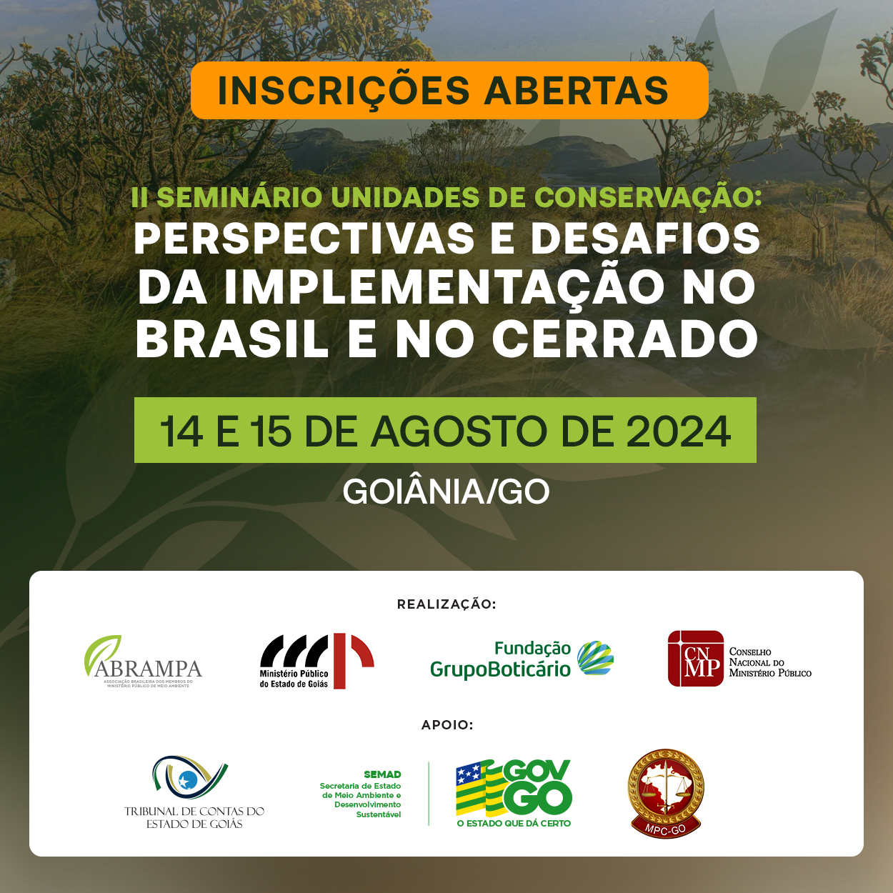 Promovido pela Associação Brasileira de Membros do Ministério Público de Meio Ambiente (ABRAMPA), em correalização com o MPGO, o Conselho Nacional do Ministério Público (CNMP) e a Fundação Grupo Boticário de Proteção à Natureza, o seminário abordará temas essenciais relacionados às áreas naturais protegidas. As discussões incluem estudos sobre as funções socioambientais das UCs, o uso sustentável dos recursos naturais pelas comunidades tradicionais, além dos desafios para a criação de novas unidades e a regularização fundiária das UCs de Proteção Integral. Serão destacadas também as iniciativas de defesa dessas áreas e estratégias para fortalecer a rede de proteção.