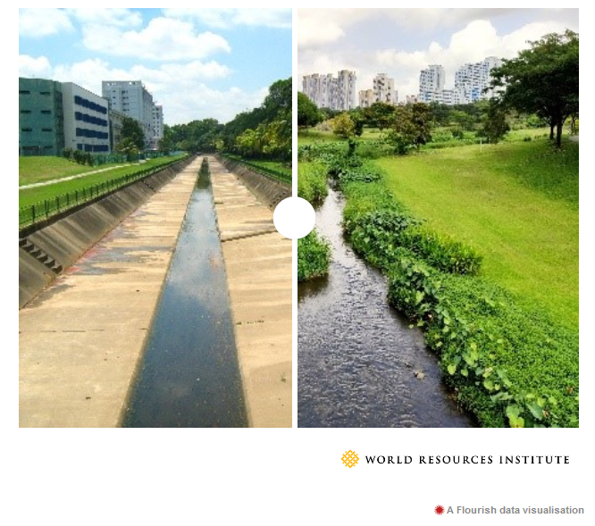 O Parque Bishan-Ang Mo Kio, de Singapura, é um modelo de como a colaboração entre departamentos pode criar projetos integrados de múltiplos benefícios a um custo mais baixo do que exigiria uma abordagem tradicional de investimento em infraestrutura cinza.