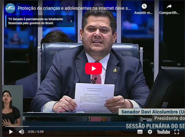 "Entre os pontos principais, estão a proibição de publicidade direcionada ao público infantil por meio de técnicas de perfilamento, a exigência de mecanismos mais eficientes de verificação de idade e a vedação de práticas digitais semelhantes a jogos de azar", explicou o presidente Davi Alcolumbre (União-AP) ao anunciar para esta quarta-feira (27) a votação do Projeto de Lei nº 2.628/2022, de proteção de crianças e adolescentes na internet.