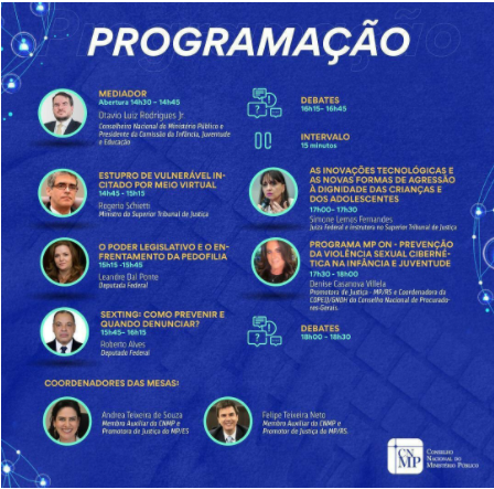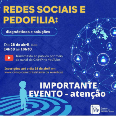 CNMP: Seguem abertas as inscrições para participar do evento “Redes Sociais e Pedofilia: diagnósticos e soluções”. Evento será transmitido, por meio do canal do CNMP no YouTube, no dia 28/4