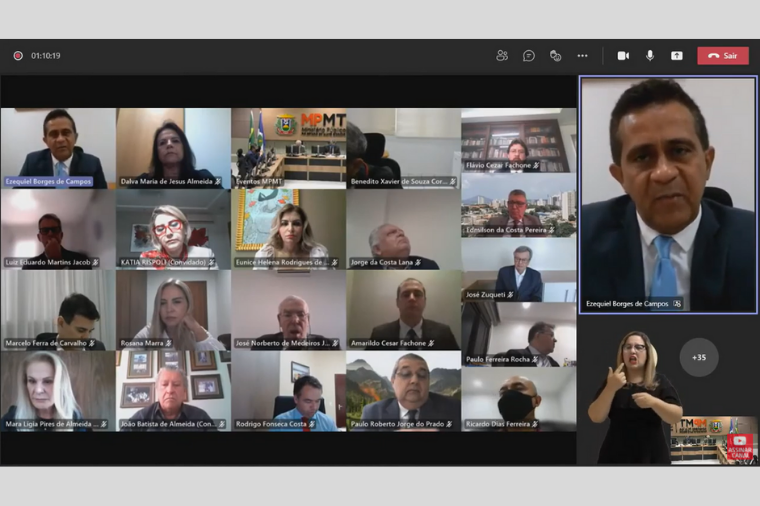 Ezequiel Borges de Campos foi empossado nesta quinta-feira (02) no cargo de procurador de Justiça e passou a integrar o Colégio de Procuradores de Justiça do Ministério Público do Estado de Mato Grosso, em solenidade híbrida em razão da pandemia da Covid-19. O novo procurador de Justiça, promovido por merecimento para a 16ª Procuradoria de Justiça Cível, fez um discurso de agradecimento, demonstrando gratidão a Deus, aos familiares, colegas membros e servidores do MPMT e amigos.