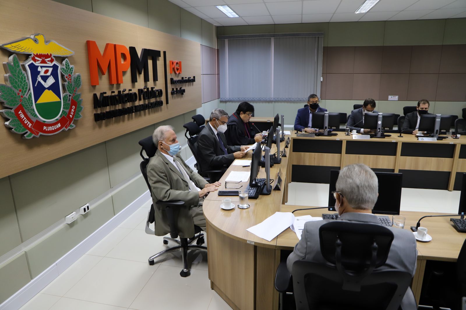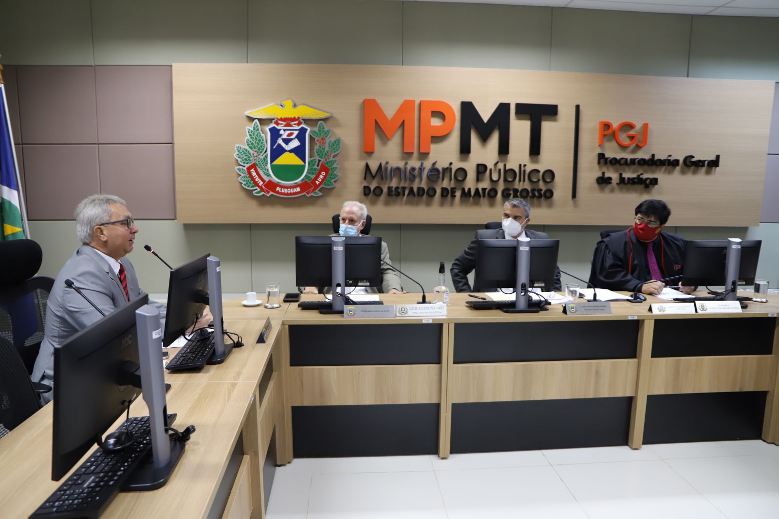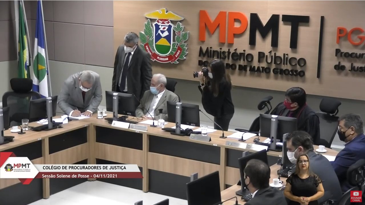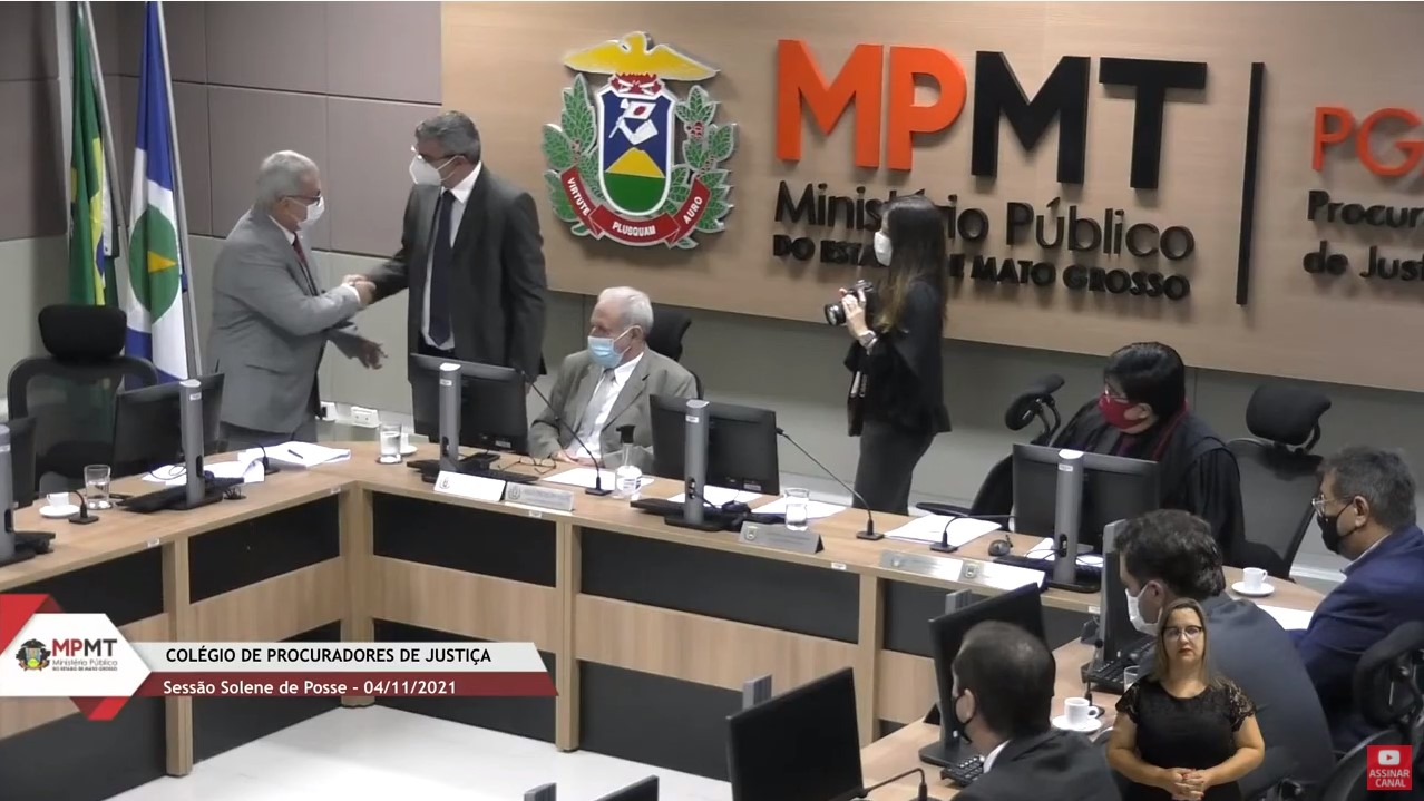 Em razão das restrições impostas pela pandemia da Covid-19, embora as atividades presenciais no MPMT tenham sido retomadas na integralidade esta semana, a solenidade de posse ocorreu de forma híbrida, com transmissão ao vivo no canal do MPMT no YouTube (assista aqui). Roberto Turin iniciou o discurso de posse agradecendo a Deus, à família, aos integrantes do Ministério Público e aos amigos, que acompanharam a cerimônia na sede da Procuradoria-Geral de Justiça ou virtualmente.