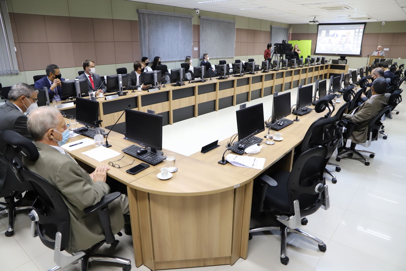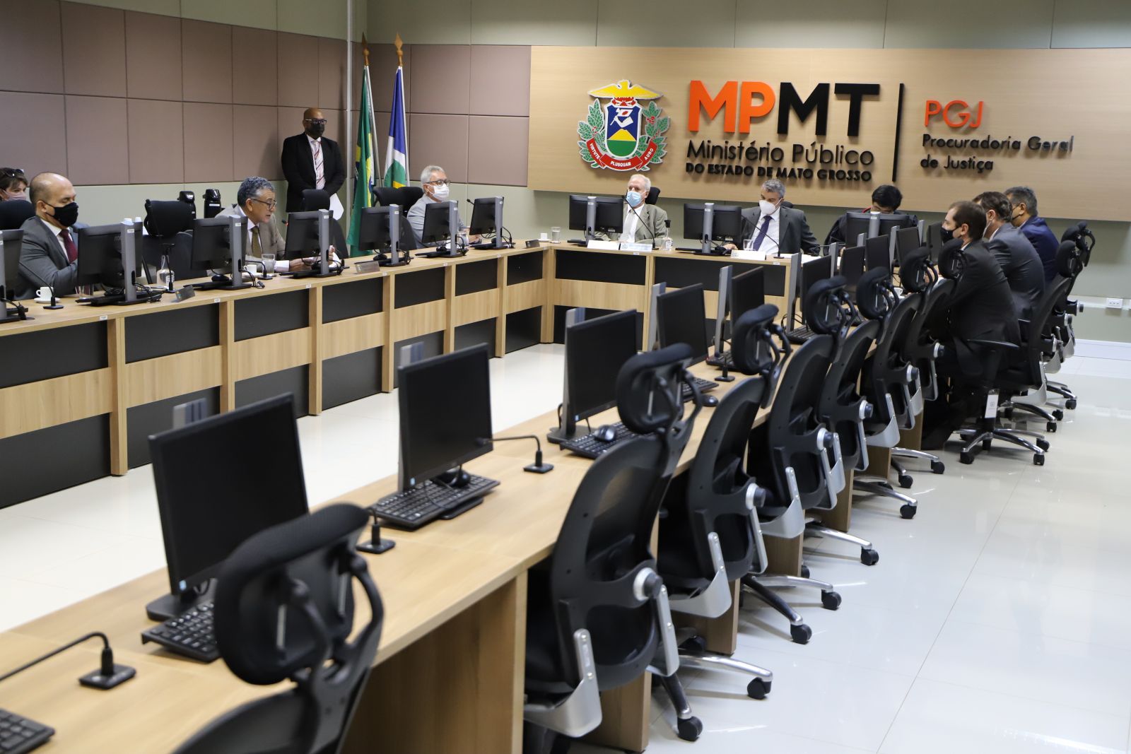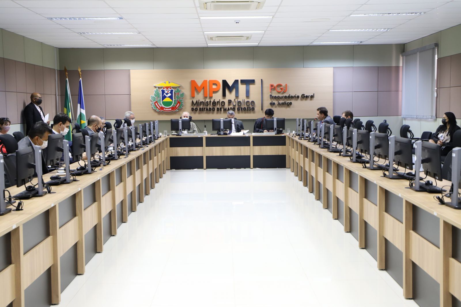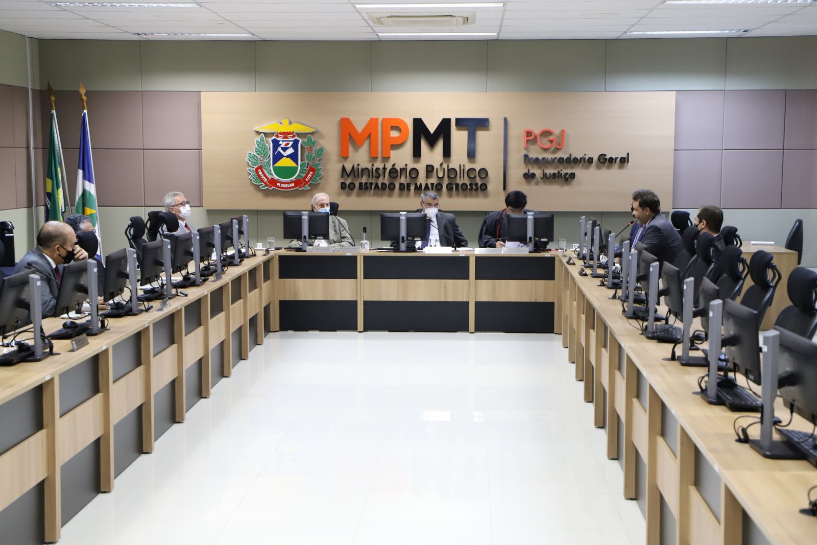 Em razão das restrições impostas pela pandemia da Covid-19, embora as atividades presenciais no MPMT tenham sido retomadas na integralidade esta semana, a solenidade de posse ocorreu de forma híbrida, com transmissão ao vivo no canal do MPMT no YouTube (assista aqui). Roberto Turin iniciou o discurso de posse agradecendo a Deus, à família, aos integrantes do Ministério Público e aos amigos, que acompanharam a cerimônia na sede da Procuradoria-Geral de Justiça ou virtualmente.
