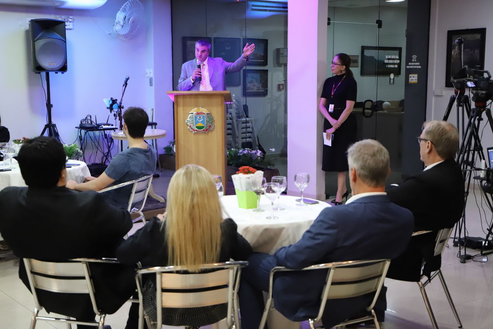 Para encerrar, agradeceu “de coração aberto” a cidade que lhe recebeu como uma mãe, à confiança da Administração do MPMT depositada nele, ao prestígio e à valoração concedidos pelo ex-diretor da escola, promotor de Justiça Joelson de Campos Maciel, aos familiares, membros do MPMT chamados carinhosamente de legionários, membros da magistratura, advogados, equipe da FESMP-MT, entre outros citados. “Que a Fundação Escola Superior do Ministério Público de Mato Grosso continue a ser uma grande sala, ensinando, promovendo e estimulando a dissertação, soterrando as covas da ignorância e aprofundando, cada vez mais, as valas do conhecimento. Que assim seja, meus amigos”, finalizou sob aplausos.