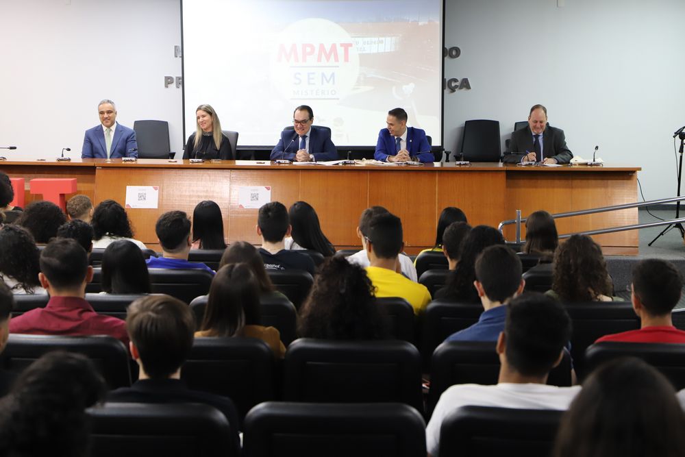 Sobre o projeto - O “Ministério Público sem mistério” tem o objetivo de ampliar o convívio e aproximar o MPMT da comunidade escolar, bem como de difundir o papel constitucional do Ministério Público na defesa da ordem jurídica, do regime democrático e dos interesses sociais e individuais indisponíveis. A iniciativa compõe o Plano de Desenvolvimento Institucional (PDI) 2020-2024 do Centro de Estudos e Aperfeiçoamento Funcional (Ceaf) - Escola Institucional do MPMT.