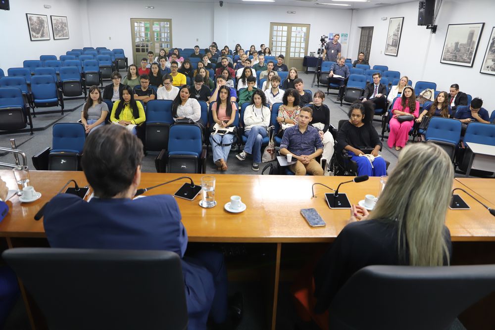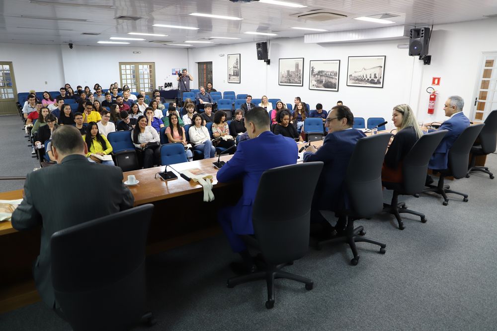 Na terceira edição do projeto “Ministério Público sem mistério”, cerca de 60 acadêmicos da Faculdade de Direito da Universidade Federal de Mato Grosso (UFMT) visitaram a sede da Procuradoria-Geral de Justiça em Cuiabá, nesta terça-feira (4), das 8h às 12h. Os estudantes foram recebidos pela subprocuradora-geral de Justiça Administrativa, Claire Vogel Dutra, e pelo coordenador do Centro de Estudos e Aperfeiçoamento Funcional (Ceaf) - Escola Institucional do Ministério Público de Mato Grosso (MPMT), Antonio Sergio Cordeiro Piedade. A atividade compôs a programação da Semana do Calouro do curso, que compreende palestras e visitas a instituições do sistema de Justiça.