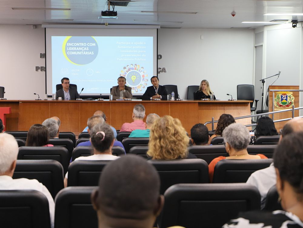 Vinte e sete lideranças comunitárias de Cuiabá participaram, na quarta-feira (9), de um encontro com a Procuradoria de Justiça Especializada na Defesa do Patrimônio Público e promotores de Justiça da Capital, com o objetivo de fomentar práticas inovadoras relacionadas aos cuidados com o patrimônio público. De portas abertas à comunidade, o Ministério Público de Mato Grosso ouviu reivindicações e propôs uma articulação junto à população para adoção de medidas proativas na busca da resolução efetiva das demandas na esfera extrajudicial.