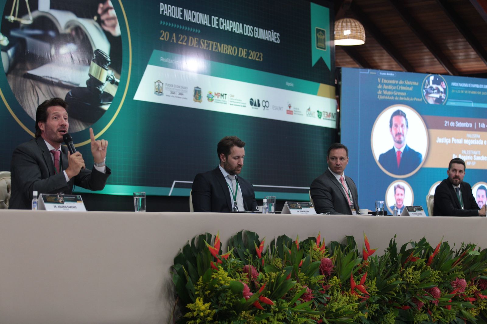 Entusiastas da justiça negocial criminal debateram o tema na tarde desta quinta-feira (21), durante o segundo painel do “V Encontro do Sistema de Justiça Criminal de Mato Grosso - efetividade da Jurisdição Penal”, em Chapada dos Guimarães. Com foco no Acordo de Não Persecução Penal (ANPP), instituto introduzido no Código de Processo Penal pela Lei 13.964/2019 - “Pacote Anticrime”, representantes do Ministério Público e da Ordem dos Advogados do Brasil defenderam a celebração de acordos e a expansão da justiça consensual no país.