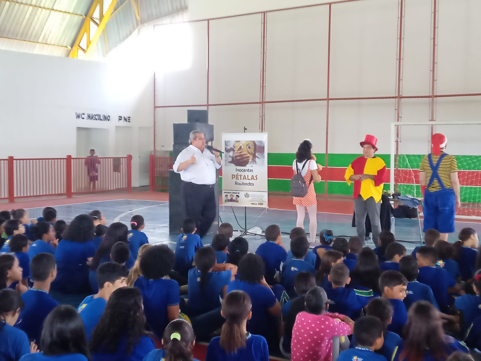 Com uma média de 500 alunos por espetáculo, o Projeto Prevenção Começa na Escola encerrou nesta sexta-feira (23), no município de Nobres, a primeira etapa de apresentações. Esta semana, a peça Inocentes Pétalas Roubadas também foi exibida em Poconé, Santo Antonio de Leverger, Barão de Melgaço, Jaciara e Juscimeira.