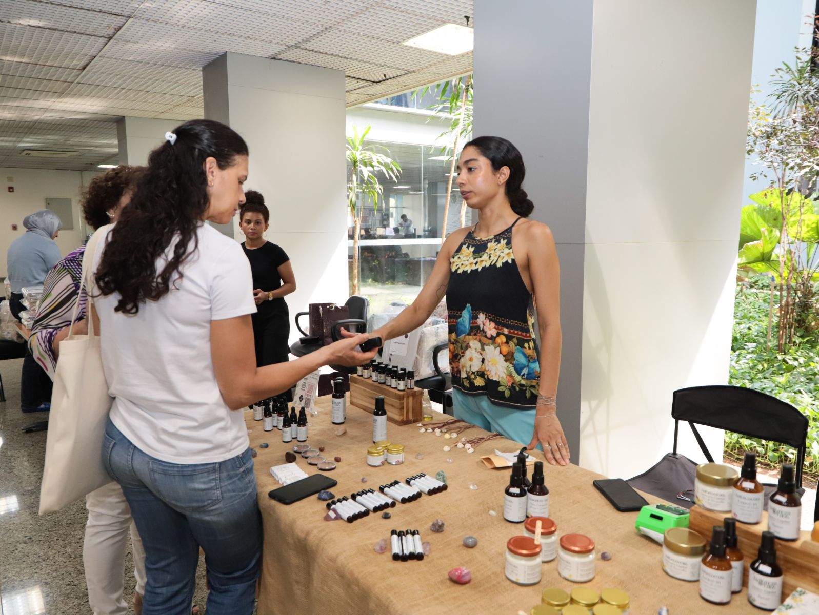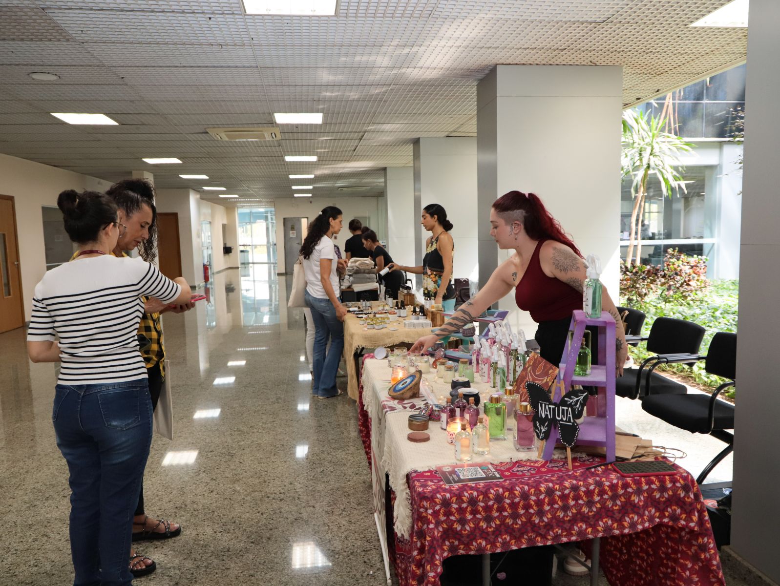 Programação - O evento contou ainda com exposição das histórias contadas pelos integrantes da instituição, feirinha especial, participação dos servidores Berenice Aparecida Modolo Lobo e Frankisney Oliveira de Andrade, que foram convidados para contar suas histórias pessoalmente, e palestra sobre a importância da saúde mental e do pertencimento no ambiente de trabalho com a psicóloga Bianca Sollero. A programação incluiu ainda a apresentação das políticas institucionais existentes, voltadas para o bem-estar, saúde e qualidade de vida no trabalho, e da Política Étnico-racial; intervenção cultural com o Grupo de Siriri Flor de Atalaia; sorteio de brindes e um coffee break servido no Espaço Vida Plena.