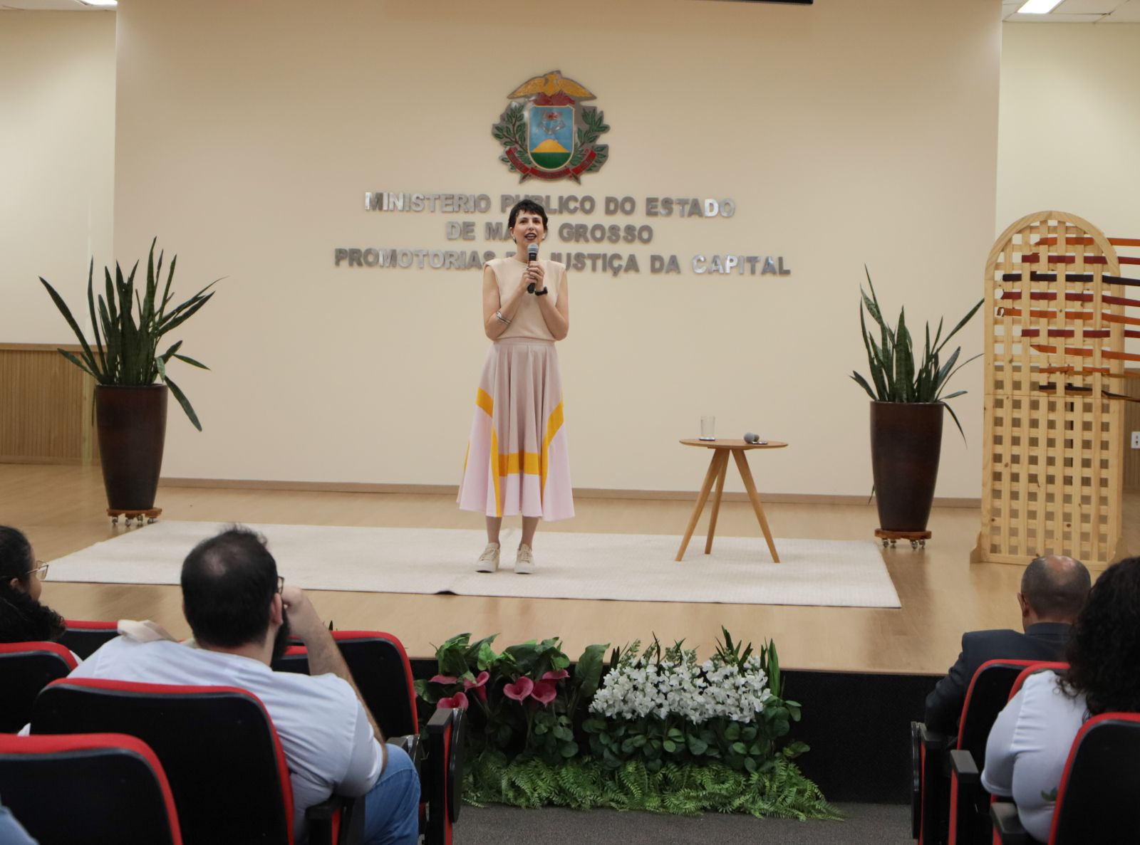 A subprocuradora-geral de Justiça Administrativa, Claire Vogel Dutra, parabenizou e agradeceu a presença de todos no evento, que “foi carinhosamente organizado pela equipe do Núcleo Vida Plena”. Ela também lembrou que a iniciativa está alinhada à campanha “Somos Todos MPMT”, que busca despertar entre os servidores e membros da instituição o sentimento de pertencimento, unidade e cooperação. “Com esse espírito de pertencimento, essa vontade mesmo de mostrar o melhor, de ajudar o próximo e de conviver bem, a gente vai conseguir continuar servindo muito bem a sociedade”, afirmou.