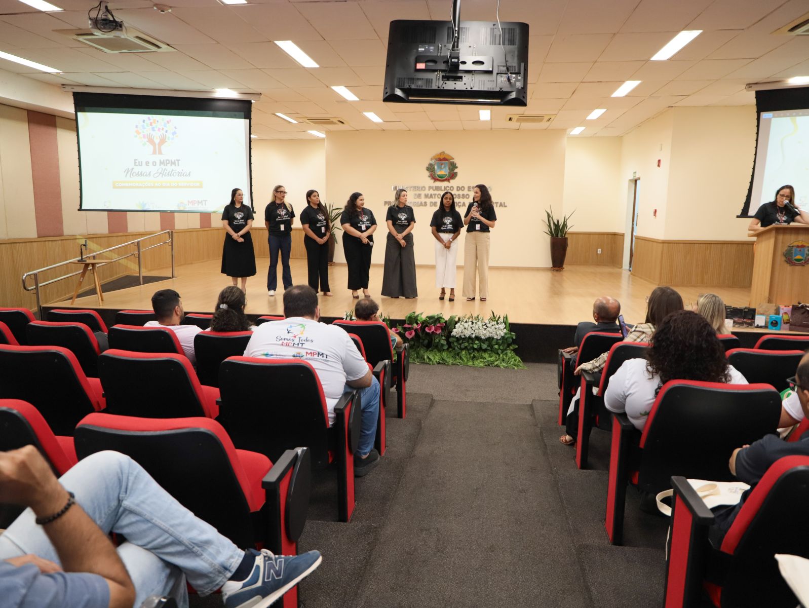 O Dia do Servidor Público foi comemorado nesta sexta-feira (25) pelo Ministério Público do Estado de Mato Grosso com o evento híbrido “Eu e o MPMT: nossas histórias”, realizado presencialmente na sede das Promotorias de Justiça de Cuiabá, com transmissão ao vivo pela plataforma Microsoft Teams. Promovida pelo Núcleo de Qualidade de Vida no Trabalho - Vida Plena, a comemoração reuniu cerca de 1,1 mil pessoas nas modalidades presencial e virtual, com o objetivo de resgatar e documentar as memórias de atuação dos membros e servidores da instituição, promovendo o reconhecimento e a valorização do trabalho realizado ao longo dos anos.