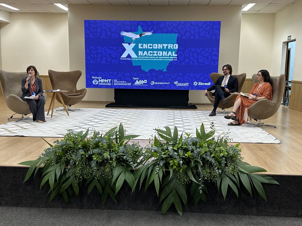 Dispositivo - Também participaram do dispositivo de abertura do evento, a subprocuradora-geral de Justiça de Planejamento e Gestão, promotora de Justiça Hellen Uliam Kuriki; a subdefensora pública-geral, Maria Cecília Alves da Cunha; a vice-presidente institucional da Associação Mato-grossense do Ministério Público, promotora de Justiça Anne Karine Louzich Hugheney Wiegert; a coordenadora do Centro de Apoio Operacional da Assistência Social, promotora de Justiça Tessaline Huguichi; a presidenta do Conselho Regional de Serviço Social – 20ª Região, Leana Oliveira Freitas, a diretora-presidente da Associação dos Assistentes Sociais e Psicólogos da Área Sociojurídica do Brasil, Maíla Rezende Vilela Luiz, a pró-reitora de Assistência Estudantil da Universidade Federal de Mato Grosso, Liliane Capilé; e o presidente do Sindicato dos Servidores do MPMT, Emerson Mendes.