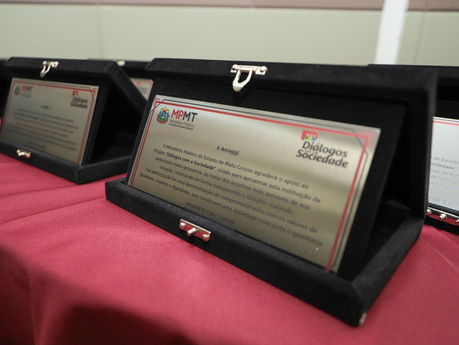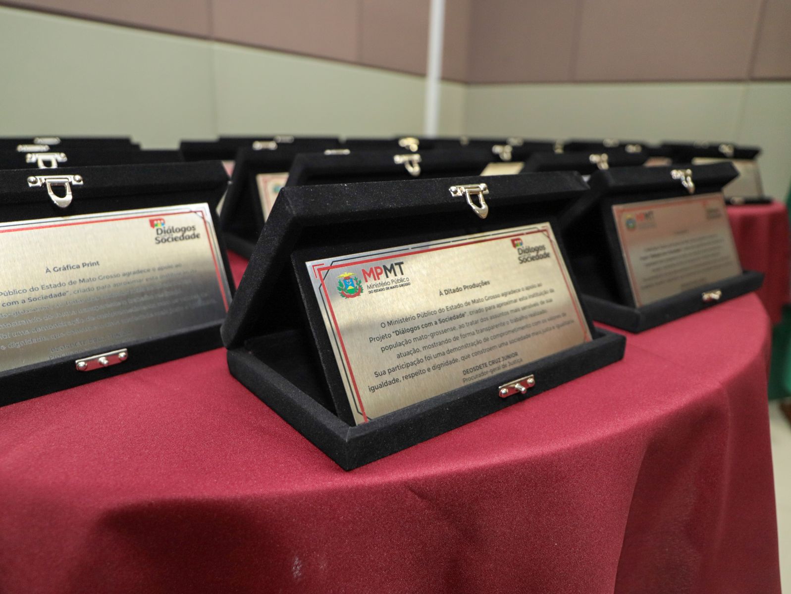 Trinta e dois parceiros do projeto Diálogos com a Sociedade, idealizado pelo Ministério Público do Estado de Mato Grosso, foram homenageados nesta sexta-feira (29), em evento realizado na sede da Procuradoria-Geral de Justiça. O reconhecimento foi a forma encontrada pelo MPMT de agradecer o patrocínio das empresas privadas e o envolvimento de personalidades que emprestaram a sua imagem para produções dos vídeos veiculados nas campanhas institucionais.