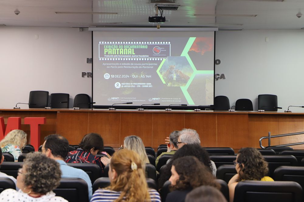 Nove novas adesões ao Pacto pela Restauração do Pantanal, entre organizações e pessoas físicas, foram registradas na tarde de quinta-feira (12), após a exibição inédita do documentário “Pantanal”, no auditório da Procuradoria-Geral da Justiça (PGJ). O evento, organizado pela 15ª Promotoria de Justiça de Defesa do Meio Ambiente de Cuiabá, visou promover uma articulação entre defensores do bioma pantaneiro na busca pela preservação e recuperação do território.