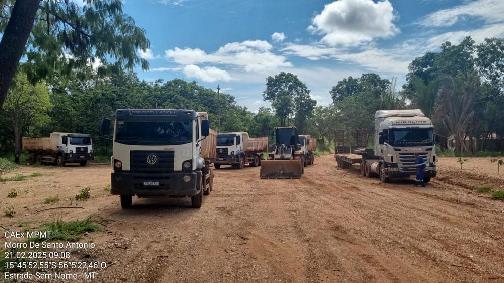 Em vistoria realizada na manhã desta sexta-feira (21) no Monumento Natural do Morro de Santo Antônio, técnicos do Ministério Público de Mato Grosso constataram a presença de cinco caminhões e um trator com identificação da Secretaria de Estado de Agricultura Familiar (Seaf), retirando pedras do local para serem alocadas na obra do empreendimento “Parque Novo Mato Grosso”.
