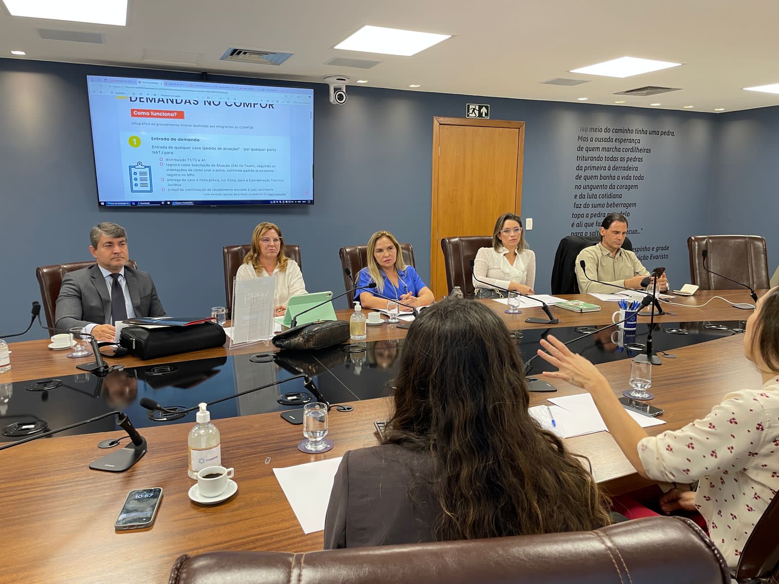Durante a visita, os membros do MPMT conheceram a estrutura do Compor, dados, fluxos, normativas e processos de trabalho.