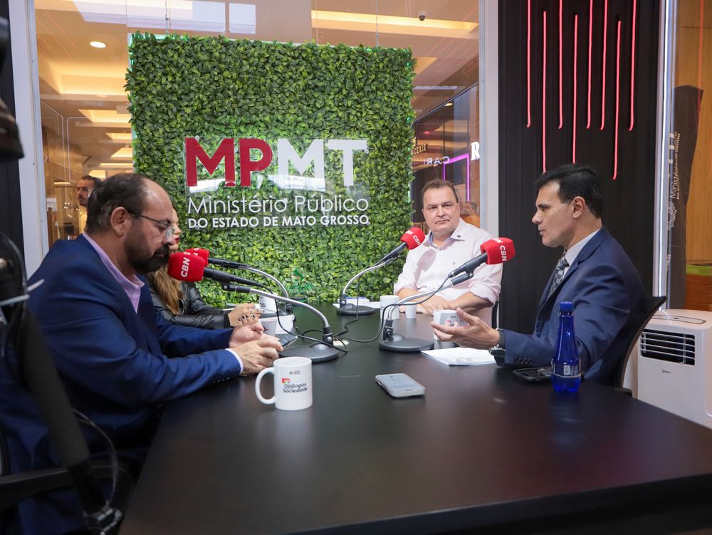 Sobre o projeto - As entrevistas do projeto Diálogos com a Sociedade seguem até o dia 11 de abril, das 14h às 15h, no estúdio de vidro localizado na entrada principal do Pantanal Shopping, com transmissão ao vivo pelo canal do MPMT no YouTube. A iniciativa é viabilizada por meio de parcerias com empresas privadas. São parceiros do MPMT nesta edição o Pantanal Shopping, Rádio CBN, Associação dos Produtores de Soja e Milho do Estado de Mato Grosso (Aprosoja), Unimed Mato Grosso, Bodytech Goiabeiras e Águas Cuiabá.