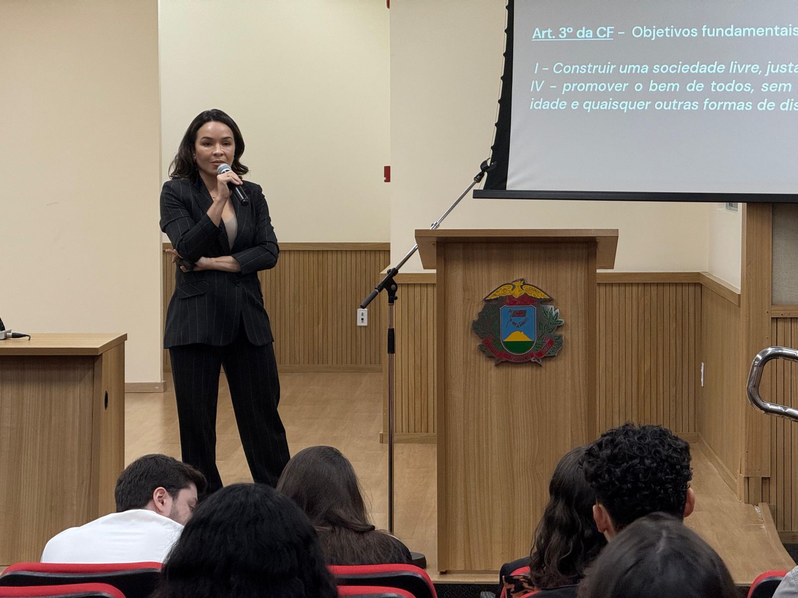 A subprocuradora-geral de Justiça de Planejamento e Gestão, Anne Karine Louzich Hugueney Wiegert, também compartilhou sua trajetória, que serviu de inspiração aos estudantes que não tinham o curso de Direito como primeira opção de graduação. Após uma primeira aprovação para o curso de Engenharia Civil, a promotora de Justiça seguiu para o curso de Direito. “Eu entendo que o meu trabalho como promotora é construir pontes entre os direitos declarados e os direitos efetivados.”