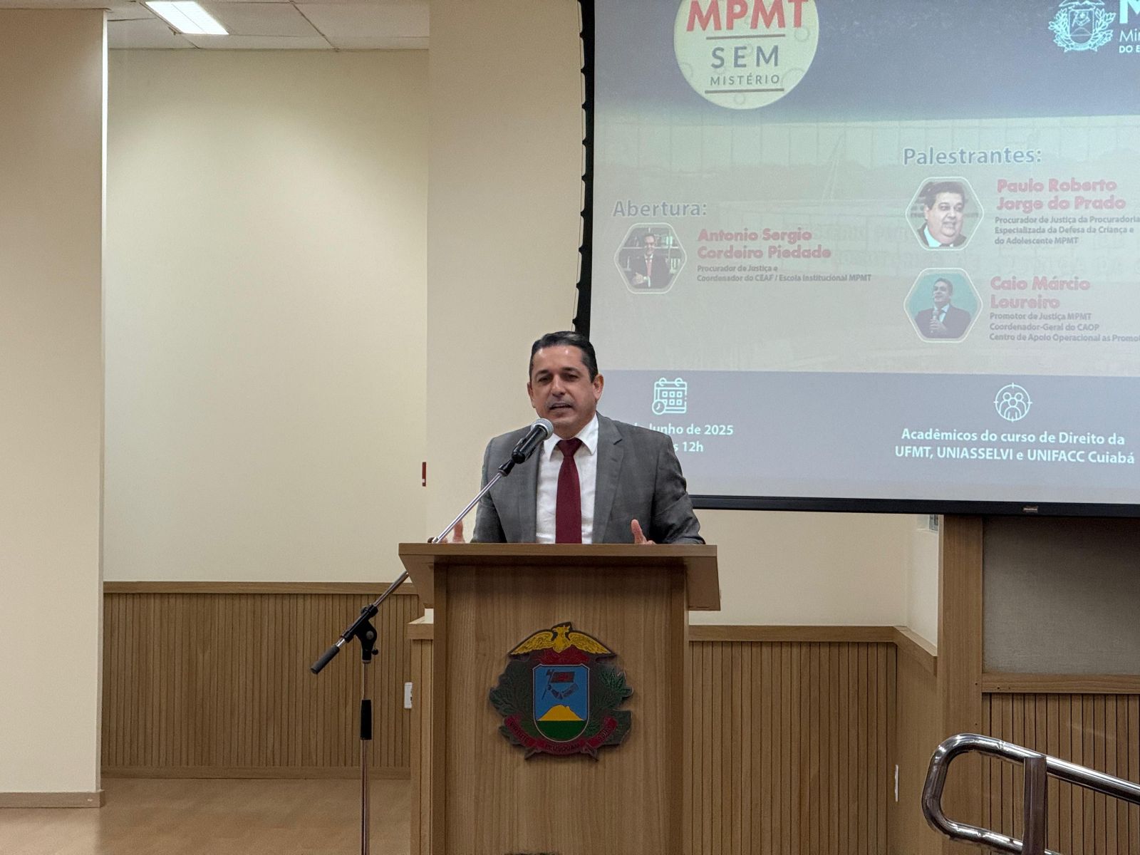Coordenador do Centro de Estudos e Aperfeiçoamento Funcional (Ceaf) – Escola Institucional do MPMT, o procurador de Justiça Antonio Sergio Cordeiro Piedade lembra que a iniciativa do “Ministério Público sem Mistério” é aproximar a comunidade acadêmica da instituição por meio das palestras de membros do Ministério Público nas mais variadas áreas.