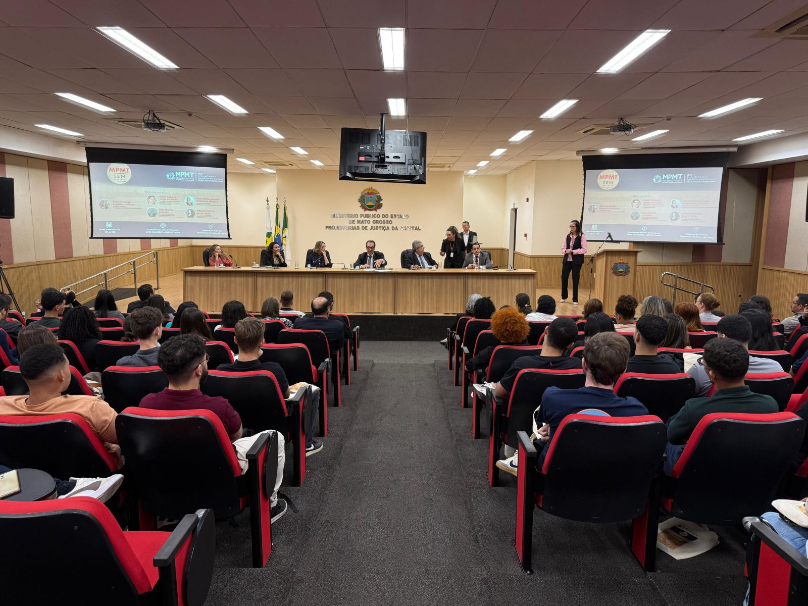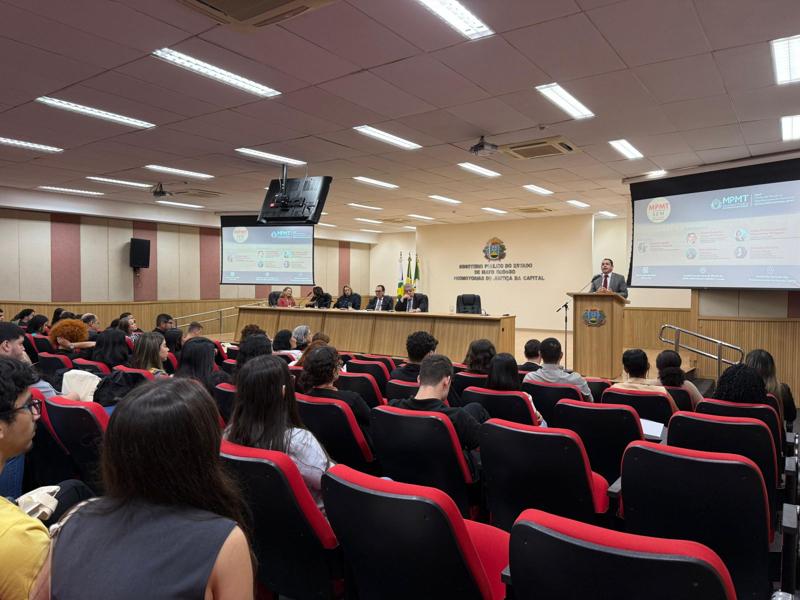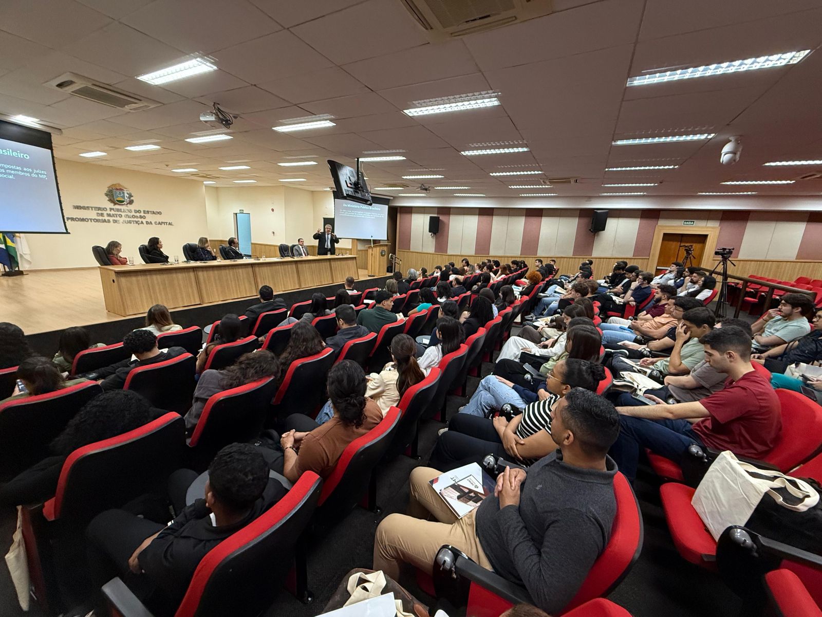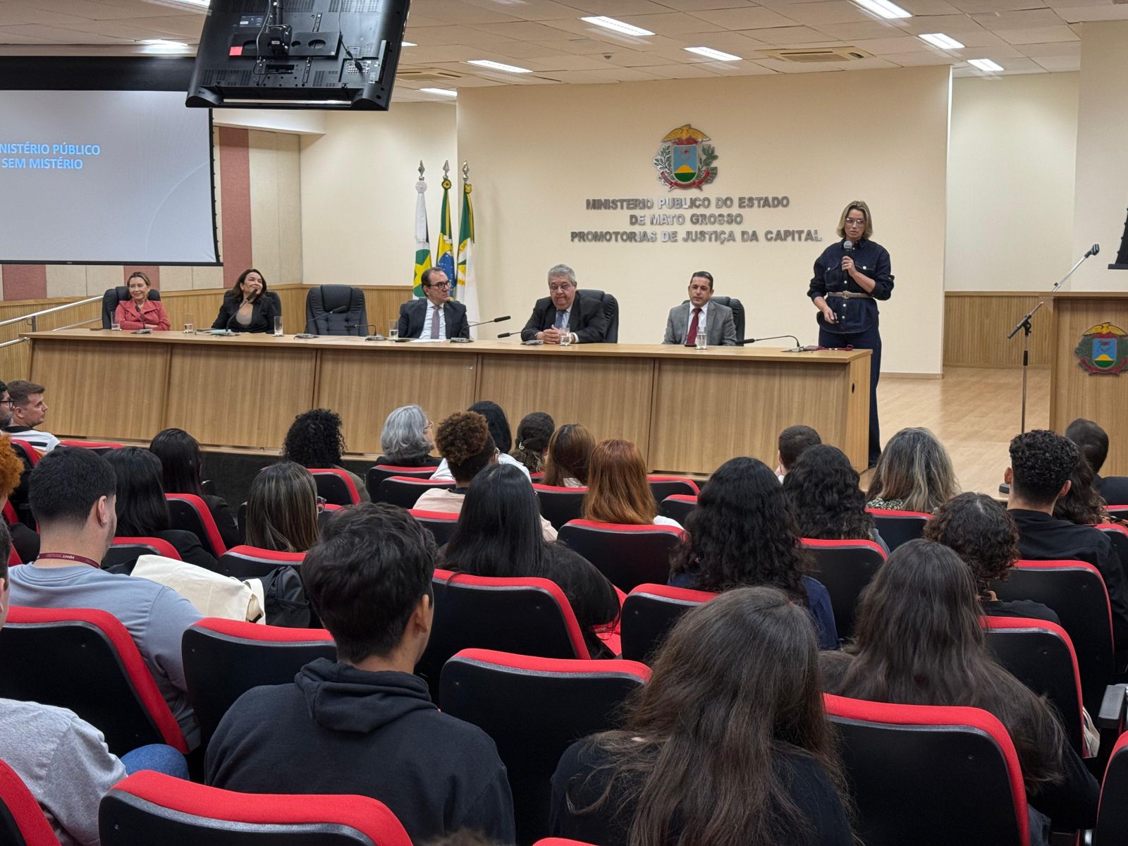 Com foco no compartilhamento de informações sobre os valores, atribuições e missão constitucional, o projeto “MPMT sem Mistério”, do Centro de Estudos e Aperfeiçoamento Funcional (Ceaf) – Escola Institucional do MPMT, recebeu estudantes do curso de Direito da Universidade Federal de Mato Grosso (UFMT), da Uniasselvi e da União das Faculdades Católicas (Unifacc) de Cuiabá, nesta segunda-feira (09), na sede das Promotorias de Justiça. Os acadêmicos participaram de uma rodada de palestras que possibilitou a troca de experiências e aprendizado.