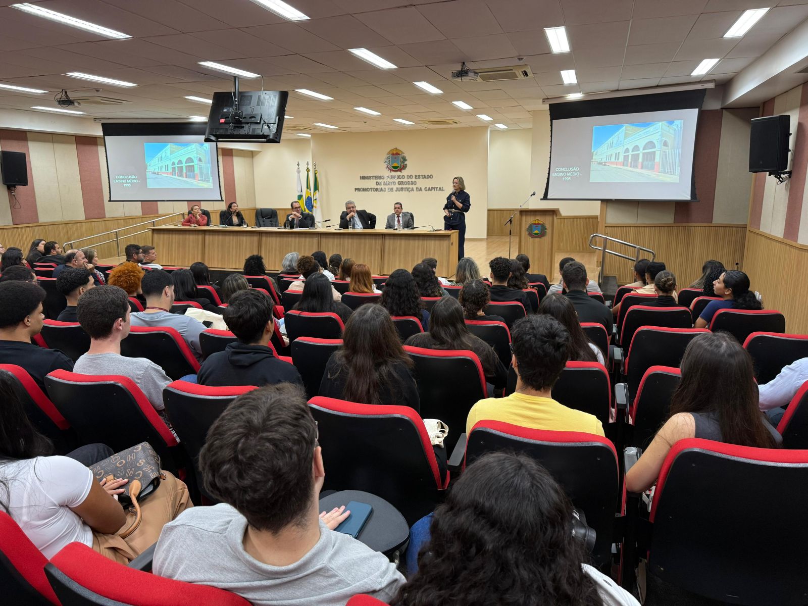Representando parte dos estudantes, a presidente do Centro Acadêmico do curso de Direito da UFMT, a acadêmica Manuela Zanchetti, agradeceu a forma acolhedora como os alunos foram recebidos. “E eu acredito muito nessa gentileza dos servidores, dos promotores e procuradores, que têm esse tato que é muito diferencial. Eu digo sempre que são profissionais fora da curva, porque eles recebem, eles têm um carinho assim, que você não vê em todos os lugares.”