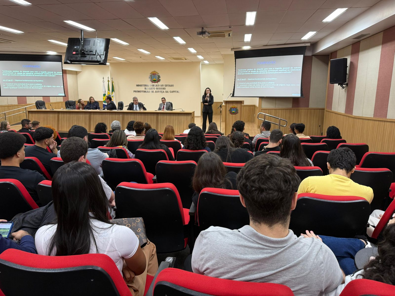 Já a promotora de Justiça e coordenadora do Núcleo de Qualidade de Vida no Trabalho (Vida Plena), Gileade Pereira Souza Maia, que atua como auxiliar no gabinete do procurador-geral de Justiça, falou sobre as atribuições do Ministério Público na promoção da Justiça, proteção dos direitos fundamentais e controle de legalidade. “Para ser um bom promotor de Justiça, antes é preciso ser um bom cidadão. Precisamos de bondade, integridade e idealismo.”