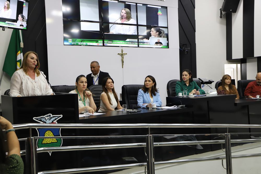 O debate reuniu representantes do MPMT, Câmara Municipal, Defensoria Pública, Polícia Judiciária Civil, Poder Público Municipal e da sociedade civil. A audiência foi requerida pela vereadora Michelly Alencar, autora da lei. O Ministério Público foi representado pela procuradora de Justiça coordenadora do Centro de Apoio Operacional (CAO) sobre Estudos de Violência Doméstica e Familiar Contra a Mulher e Gênero Feminino, Elisamara Sigles Vodonós Portela, e pela promotora de Justiça auxiliar do procurador-geral de Justiça, Gileade Pereira Souza Maia.