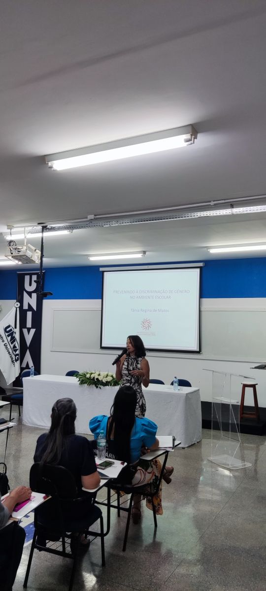 A primeira etapa da qualificação ocorreu no dia 9 de setembro (terça-feira), no auditório do Centro Universitário de Várzea Grande (Univag), e contou com duas aulas: “Tipos de violência e desigualdades de gênero no ambiente escolar”, ministrada por Tânia Matos, presidente da Associação Brasileira de Mulheres da Carreira Jurídica de MT (ABMCJ-MT), e “Princípios norteadores do atendimento de mulheres vítimas de violência”, conduzida pela analista assistente social do MPMT, Michelle Moraes Santos.