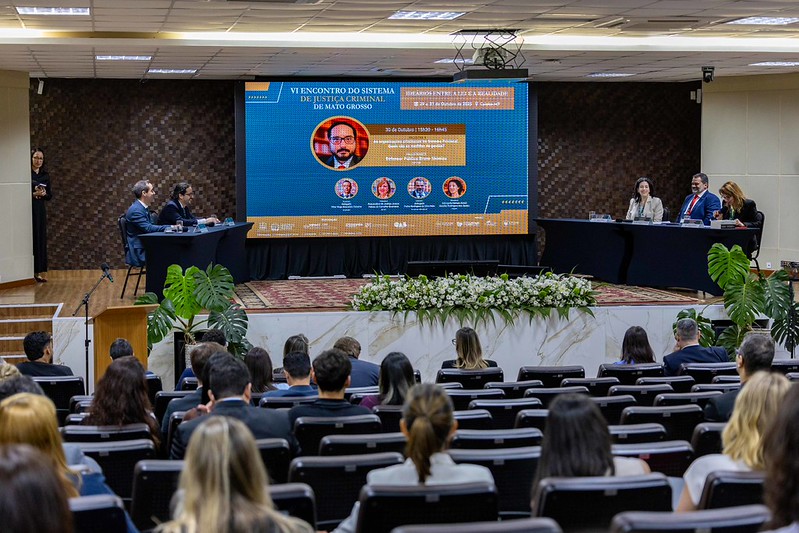 "As organizações criminosas dentro do sistema prisional só perderão força com o fortalecimento de políticas públicas que possibilitem ao Estado reassumir o controle sobre as unidades prisionais. É necessário garantir o acesso à Justiça e à Defensoria Pública nas unidades prisionais, investir em políticas de reintegração de egressos, promover a manutenção de laços familiares. É preciso pensar para além", alertou o defensor público Bruno Shimizu, da Defensoria Pública de São Paulo, durante a sua palestra ‘As organizações criminosas no Sistema Prisional. Quais são as medidas de gestão?’, no 6º Encontro do Sistema de Justiça Criminal de Mato Grosso.