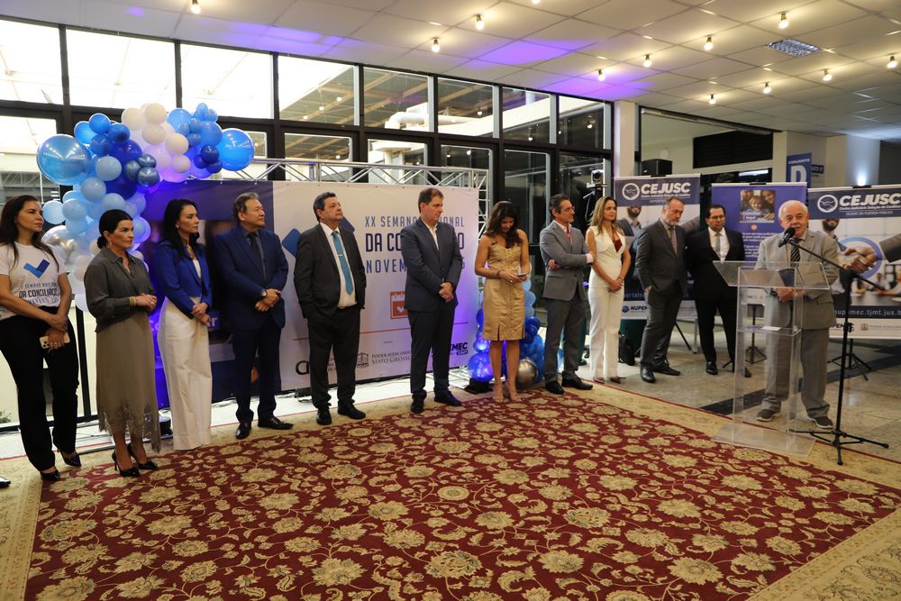 O Ministério Público do Estado de Mato Grosso (MPMT) participou, na tarde desta segunda-feira (3), da abertura da XX Semana Nacional da Conciliação, realizada no Fórum de Cuiabá, com o tema “Conciliar é Legal”. A iniciativa, promovida pelo Conselho Nacional de Justiça (CNJ), ocorre simultaneamente em todo o país entre os dias 3 e 7 de novembro. Durante a semana, cinco promotores de Justiça atuarão em 95 audiências voltadas à resolução de processos judicializados de improbidade administrativa, reforçando o compromisso do MPMT com a pacificação social e a efetividade da justiça consensual.