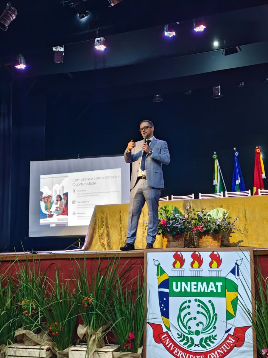 O Ministério Público de Mato Grosso (MPMT) participou da IX Semana Jurídica realizada pela Universidade do Estado de Mato Grosso (Unemat), campus de Alta Floresta. No evento, na terça-feira (21.10) o promotor de Justiça Adalberto Biazotto Júnior ministrou a palestra “Licenciamento e Compliance Ambiental nas Disputas Internacionais do Agronegócio”.