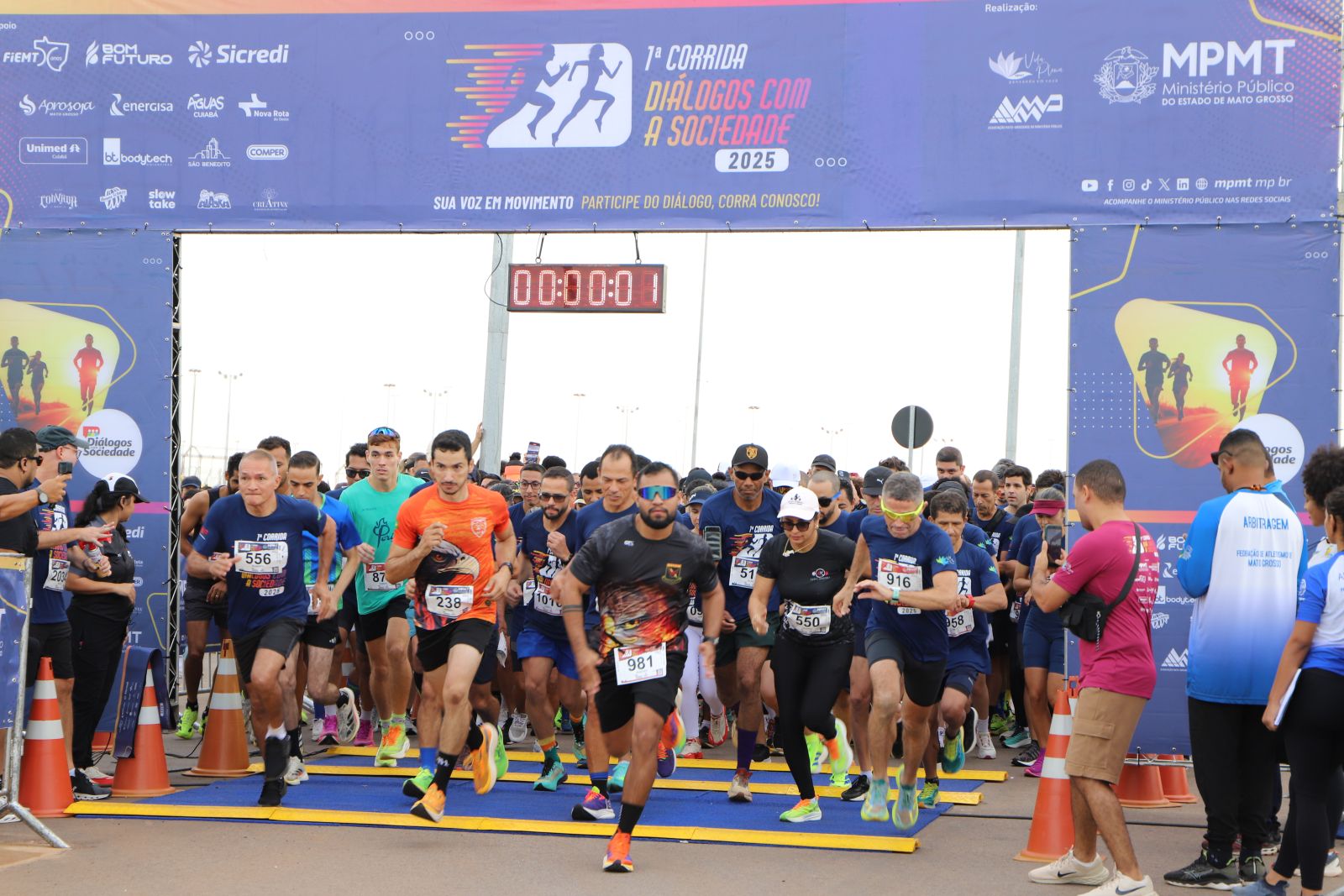 Sob um céu com sol entre nuvens e clima perfeito para correr, cerca de mil atletas participantes da 1ª Corrida Diálogos com a Sociedade transformaram a manhã deste domingo (16) no Parque Novo Mato Grosso, em Cuiabá, em um grande encontro de esporte e cidadania. Promovida pelo Ministério Público do Estado de Mato Grosso, em parceria com a Associação Mato-grossense do Ministério Público (AMMP), a prova beneficente foi muito mais que uma corrida: celebrou integração, solidariedade e diálogo, levando saúde, bem-estar e diversão para todos os participantes.