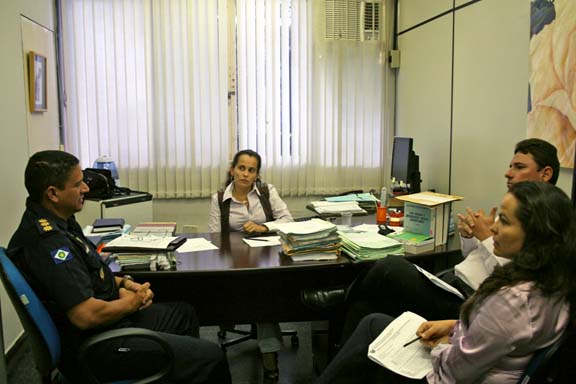 O primeiro encontro foi realizado com o comandante da Polícia Militar (Regional I- CRI) de Cuiabá, coronel PM Joelson Geraldo Sampaio. Participaram das discussões os promotores de Justiça Fânia Helena Oliveira de Amorim, Márcia Borges Silva Campos Furlan e Reinaldo Rodrigues Oliveira Filho.